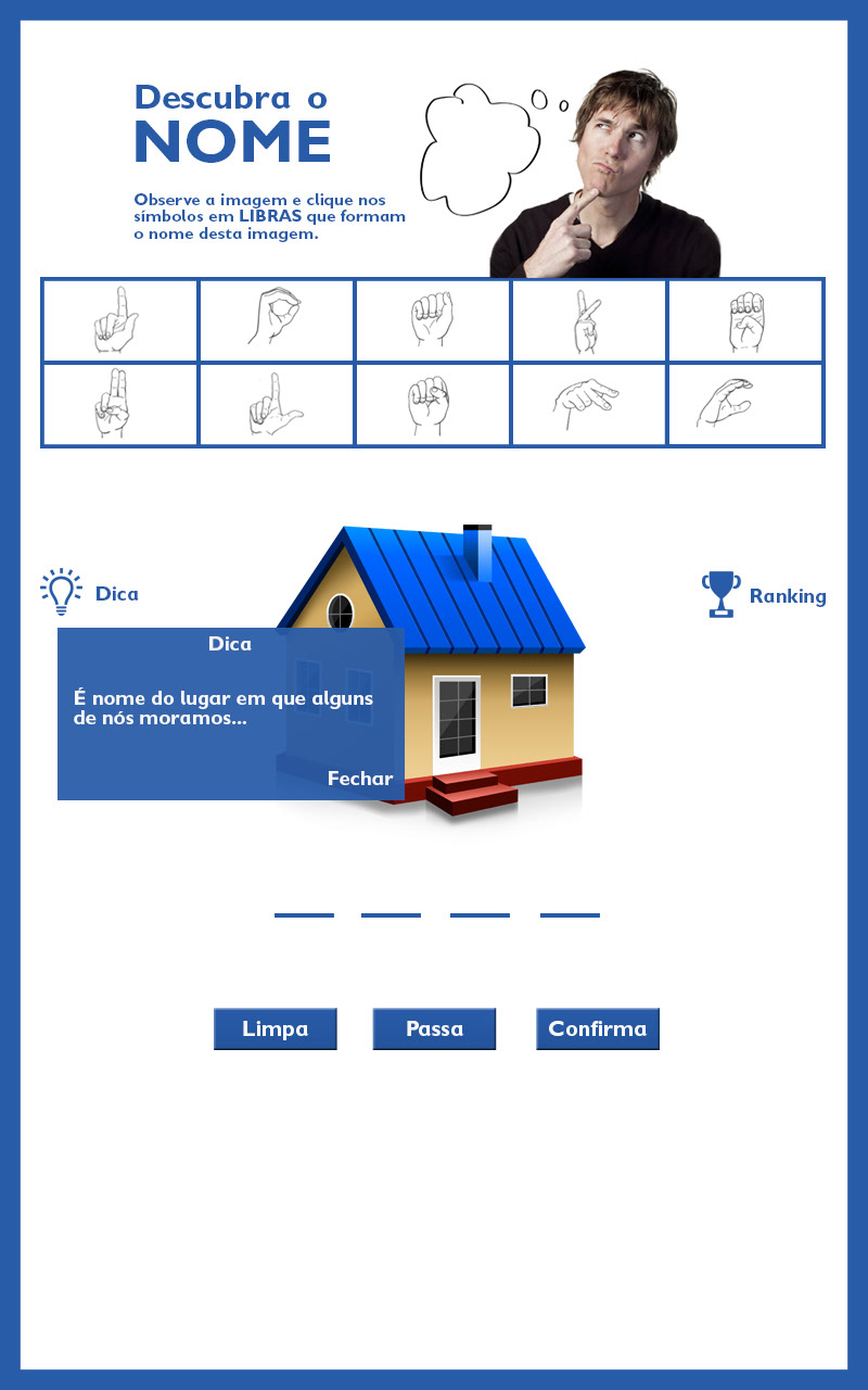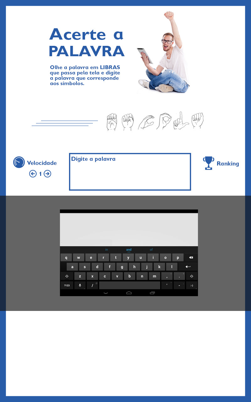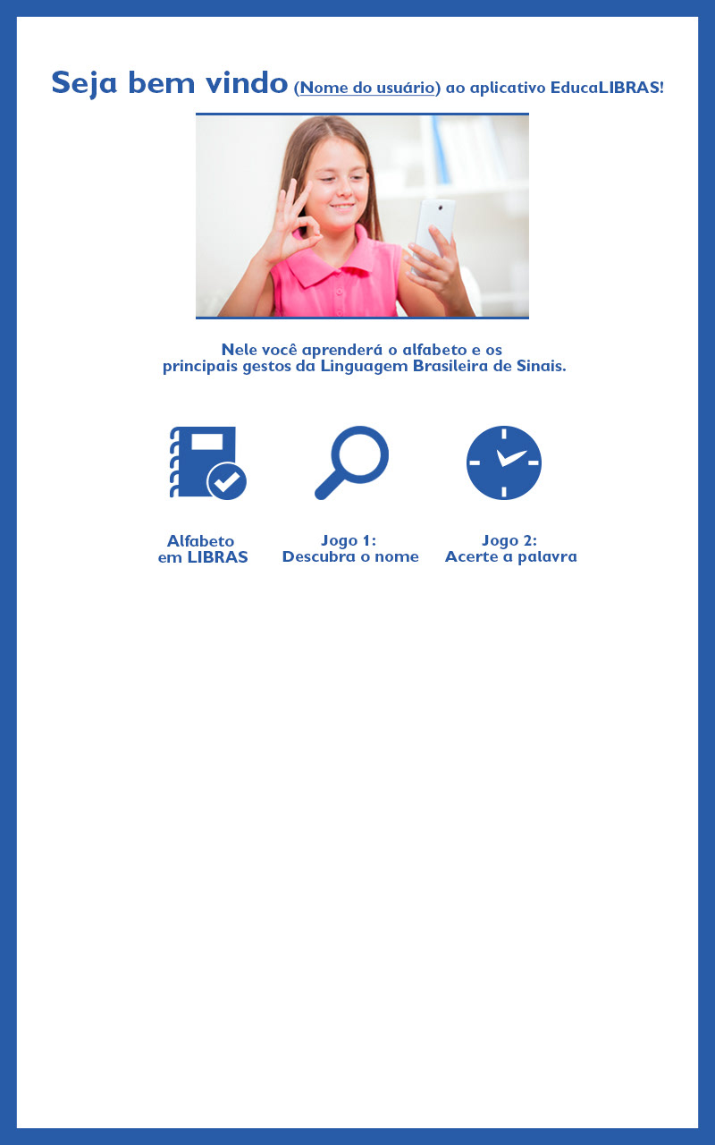 Projeto de um aplicativo que ensina LIBRAS para crianças surdas e ouvintes. Utiliza conceitos de design da experiência do usuário e design de interface para um produto eficiente e adequado para os clientes.
