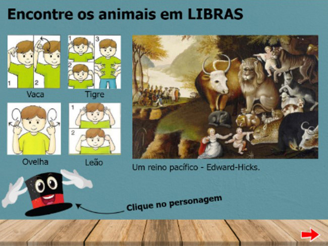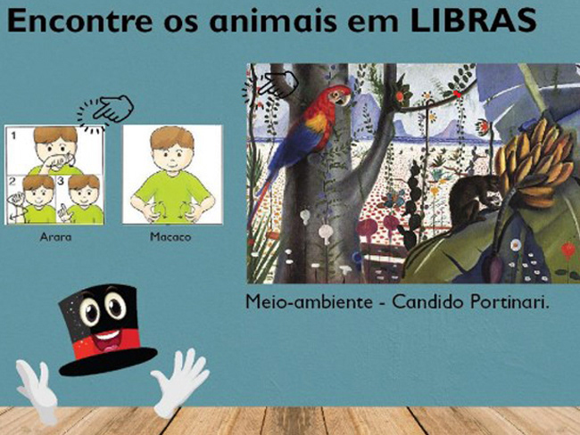 Este trabalho fez parte da minha dissertação de mestrado e teve por objetivo investigar a linguagem visual presente na criação de um livro digital de arte para crianças surdas e como este processo pode auxiliar na inclusão dos alunos surdos nas escolas. Os estudos foram realizados por meio de levantamentos bibliográficos acerca dos aspectos culturais da surdez, o estado da arte sobre os livros digitais para surdos, o letramento visual, leitura de imagens e materiais de apoio utilizados em escolas bilíngues (surdos e ouvintes). O livro digital de arte foi criado com sugestões de atividades lúdicas ao aprendizado das expressões faciais e os sinais dos animais em LIBRAS, em conjunto com a leitura das imagens em obras de arte.