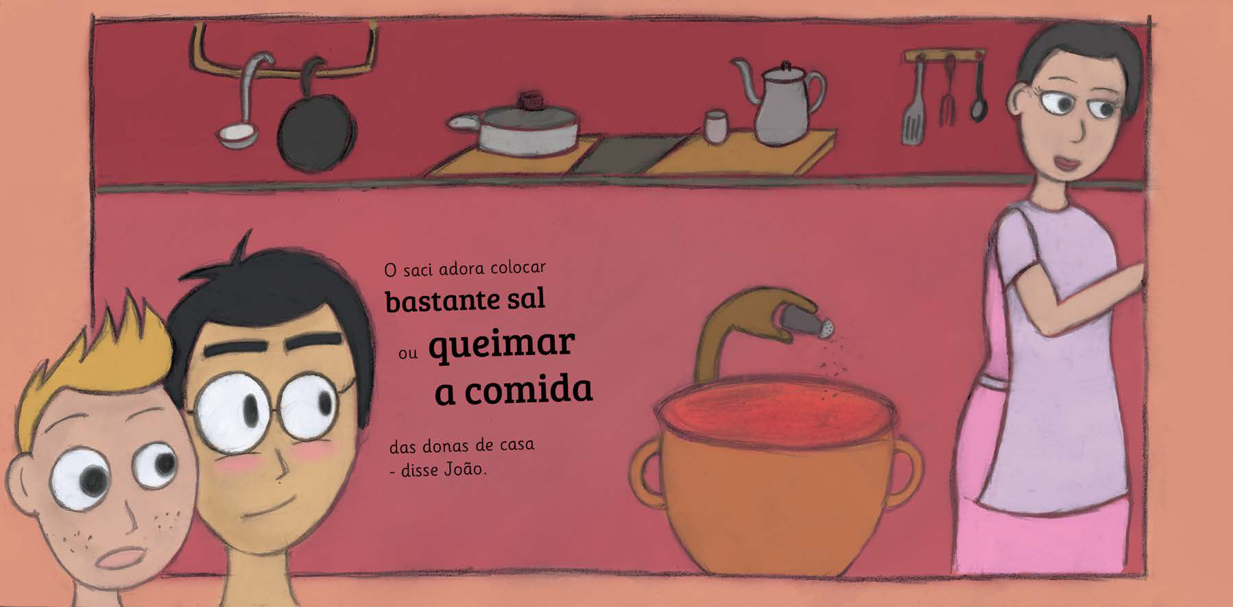 O “Livro infantil sobre o folclore brasileiro para crianças surdas” foi meu projeto de conclusão da graduação de Design. Neste trabalho foram realizadas diversas pesquisas acerca das crianças surdas e suas questões sociais, o folclore brasileiro e suas características, entrevistas com pessoas relacionadas à educação dos surdos e também foram feitas análises de materiais didáticos similares. O foco principal do projeto foi incentivar a criação de livros mais adequados aos surdos com articulação da linguagem gestovisual (LIBRAS) e textual de forma colaborativa, com intuito de que este trabalho servisse como base para futuros projetos no âmbito do Design Inclusivo. Todas as imagens presentes neste livro foram desenhadas à mão e coloridas digitalmente.